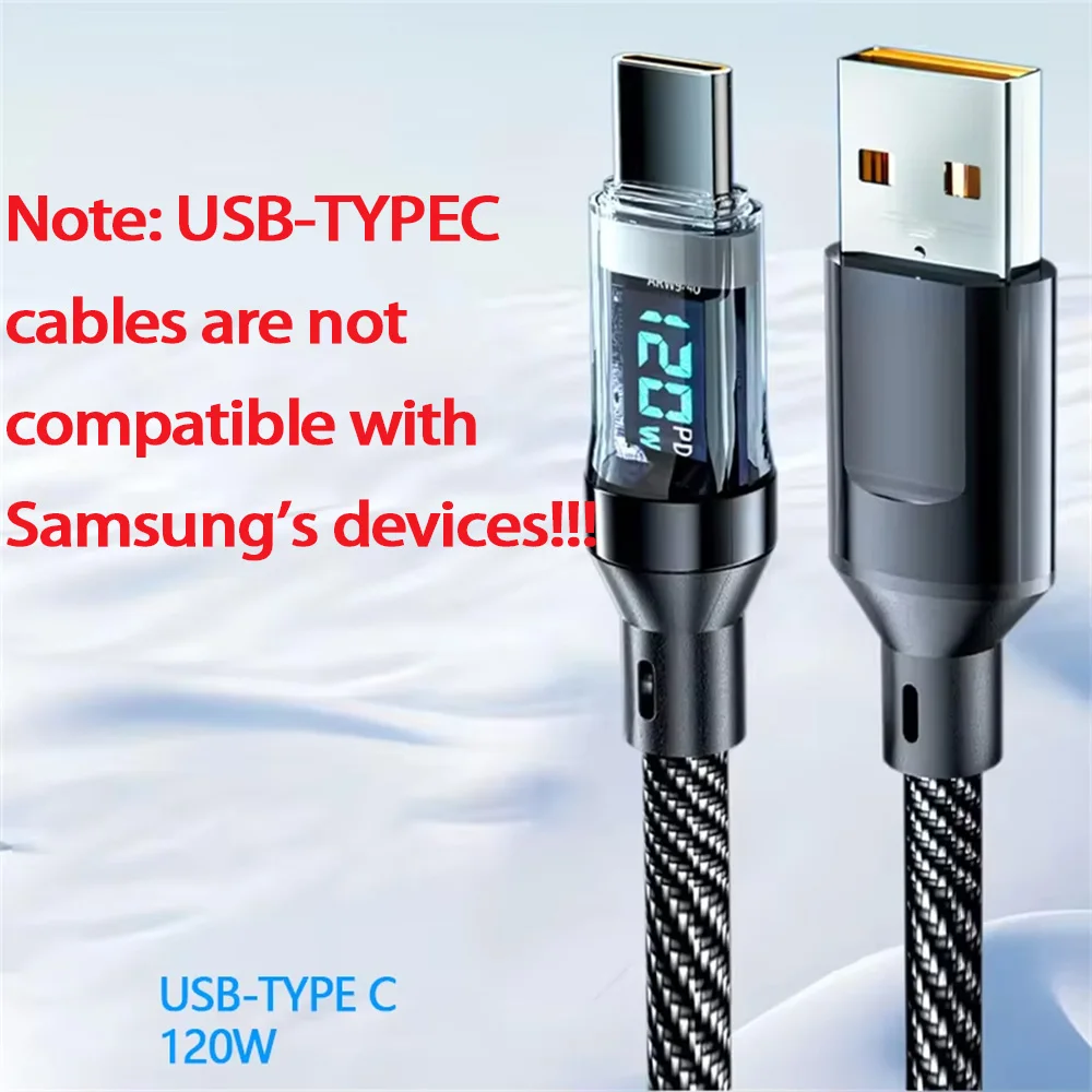 USB to TYPE-C data cable supports up to 120W, TYPE-C to TYPE-C supports up to 100W fast charging, intelligent digital display, and clear power at a glance.